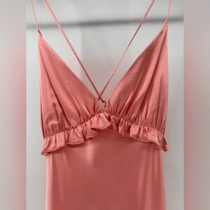 Klesis Pink Midi Satin dress with V-neck open back