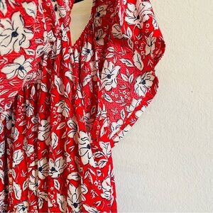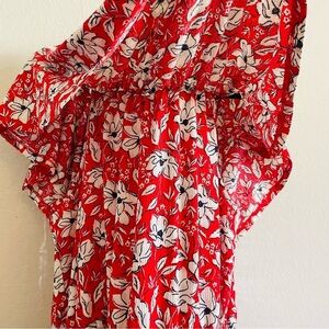 Cato woman's Floral vibrant red Maxi Dress plussize vacation summer with pockets