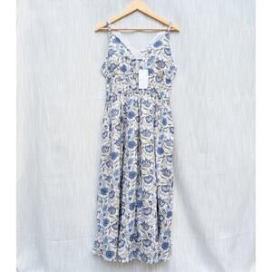 NWT Caroline Constas Blue Floral Cotton/Modal Sleeveless Midi Dress, size M