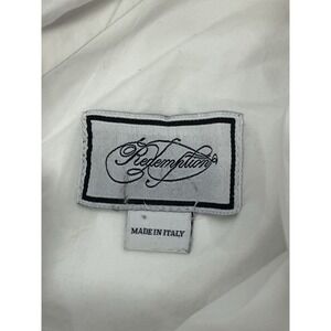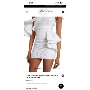 "DRAPED MINI DRESS THAT CONJUGATES ELEGANCE AND FEMININITY. MADE OF COTTON POPLIN. THE ONE SHOULDER DESIGN IS ACCENTUATED BY SPLENDID RUFFLE THAT DONATES MOVEMENT. TIGHT FIT. COMPOSITION: 97% COTTON, 3% ELASTANE; LINING: 95% POLYESTER, 5% ELASTANE. DRAPED CUT AND CRIMPED. MADE IN ITALY." Source: redemption website