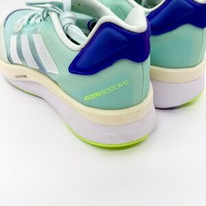 No Box. Experience the ultimate in speed and comfort with these Adidas Adizero Boston 10 running shoes. Designed for women, their refreshing mint blue hue evokes a sense of energy and freshness with every stride. The innovative Lightstrike Pro cushioning provides an unparalleled responsive feel, propelling you forward with each step, while the signature Adidas three stripes ensure iconic style. These shoes are perfect for hitting the pavement for your daily run, conquering a new personal best on race day, or enjoying a brisk walk in the park.