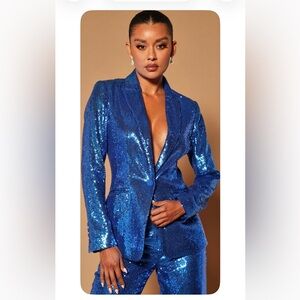 Shine bright in this stunning blue sequin 2 piece. Perfect for any glamorous occasion.