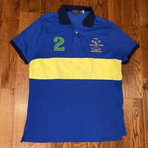 Polo Ralph Lauren Short Sleeve Rugby Polo Men's XL #2 Blue Striped Pony Logo