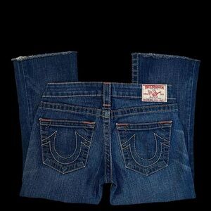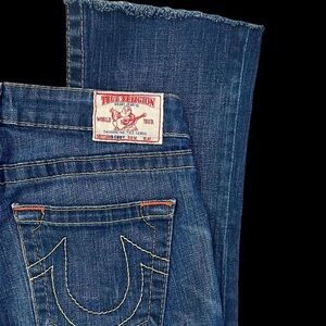 Elevate your style with these True Religion straight leg jeans. Classic blue hue. Perfect for everyday wear.