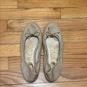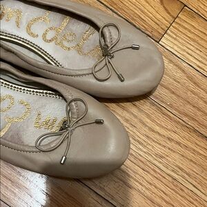 SAM EDELMAN Felicia bow logo beige tan leather flat ballerina shoes