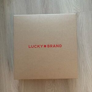 Keep warm and stylish with the Lucky Brand scarf and hat set. Featuring a tan hat with a playful pom-pom and a cozy checkered scarf, this set is perfect for chilly days.