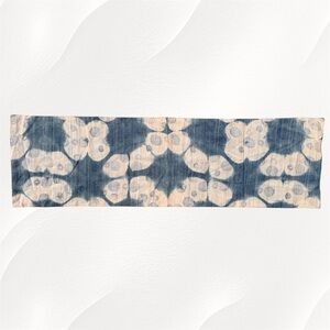 Fabindia Indigo Blue Hand Block Print Silk Shibori Chiti Table Runner, 44”x 13”
