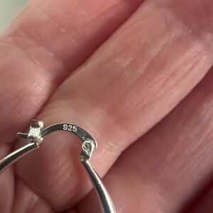 Beautiful large Sterling Silver oval post hoop earrings. They are well made and are stamped on the post.