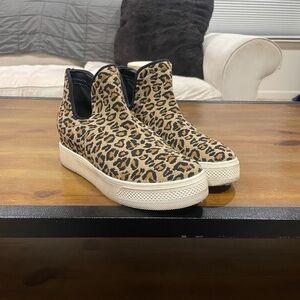 Chic leopard print sneakers/boots Slip-on design. Comfortable and trendy.