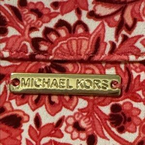 Michael Kors Pink Floral Sleeveless Dress w Ruffle Hem Women’s S Small. Pullover, sleeveless, split neck with ties, stretch poly blend, gold tone logo hardware. Great condition!
