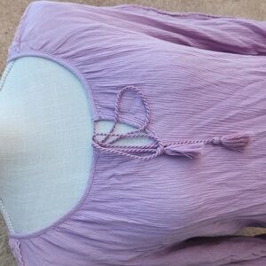 Como Vintage Ombre High-low Hem 3/4 Sleeve Tassel Tie Keyhole Crew Neck Blouse