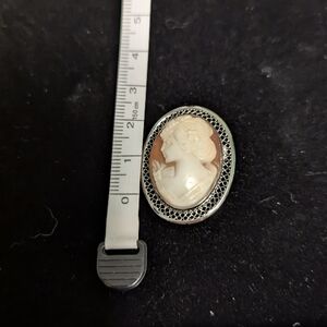Vintage mid- century cameo carved of shell and sterling silver. On the back it says Beau Ster. As you can see it is in like new condition. One owner, which was my mother.