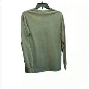 Spirit Lake Ministry long sleeve T-shirt. 100% Cotton. Color: Army Green. Size: small. Measurements laying flat: Armpit to Armpit 18.25”. Shoulder to hem 25.75”. Pet free smoke free environment.