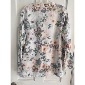 Saint Tropez West Linen Blouse Women's Sz L Floral Beachy Tropical Cruise. Condition is Pre-owned - Excellent. Shipped with USPS Ground Advantage.