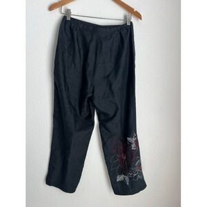 Keywords: ANNE CARSON pants, women's black pants, embroidered trousers, floral pants size 8, silk blend pants, beaded pants, designer trousers, evening wear pants, special occasion pants, chic trousers, artistic pants, luxury pants, elegant pants