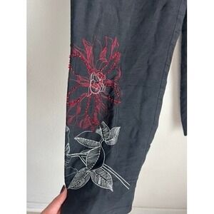 ANNE CARSON Black Embroidered Silk Blend Pants Size 8 Floral Beaded