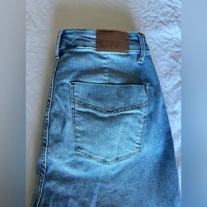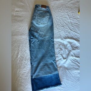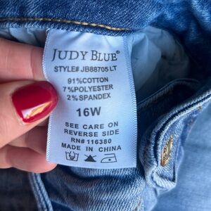 Chic wide leg cropped Judy Blue jeans with a light blue wash with darker wash on bottom few inches of legs with unfinished hem. These have been well loved but still have a lot of wear in them. 16W. 23 inch inseam. Perfect for a trendy look.