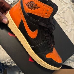 Bold geometric patterns. Features red, blue, and brown tones. Stylish Supreme design.