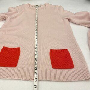 Boden Wool Cashmere Crewneck Sweater. Contrasting orange patch pockets at the hip.