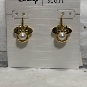 Kendra Scott x Disney Gold Minnie Mouse Drop Earrings in White Pearl