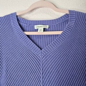 Coldwater Creek Women's Purple V-Neck Ribbed Long Sleeve Sweater Plus Size 2X