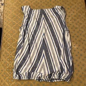 Max Studio blue and white geometric striped tank top; elastic at bottom; NWOT; super soft