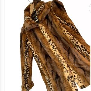 Dennis Basso Brown Leopard Faux Fur Jacket