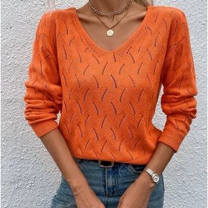 New orange v neck knit long sleeve sweater