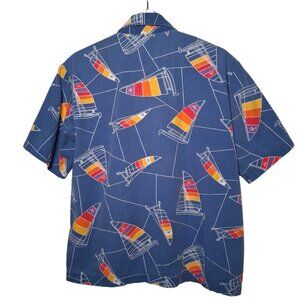 Vintage 1990s Hobie Cat Sailboat Shirt M Blue Rainbow Sail Sailing Beach Party