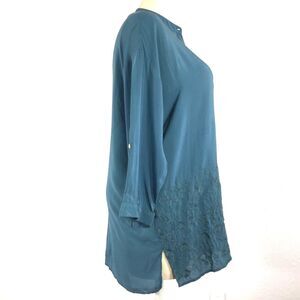 MIB Plus Tunic 1X Teal Green Blouse Embellish Embroider Hem Long Top Viscose
