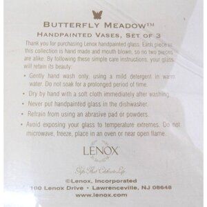 Lenox Butterfly Meadow Hand Painted Glass Vase Set of 3 NIB