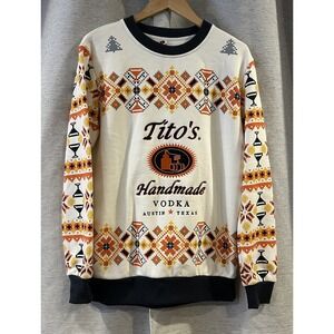 Tito's Vodka Sweatshirt Adult Medium White Ugly Holiday Sweater Pullover Fleece
