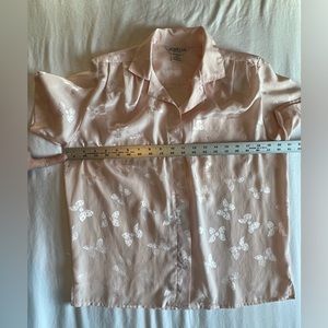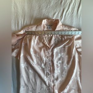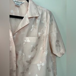 Vintage Jordan New York Button Up, V-Neck Pink Collared Blouse, Bow Print Size Small or 5/6