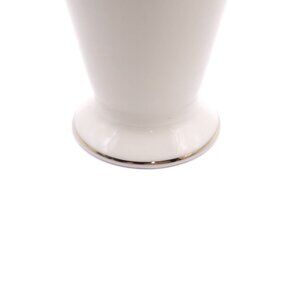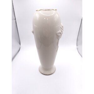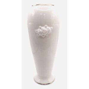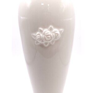 White Ceramic Vase With Rose Embossed Design & Gold Trim