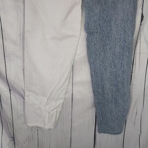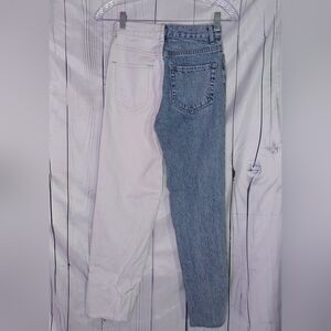 PacSun Eco White Two-Tone Split Leg High Rise Button Fly Straight Leg Jeans