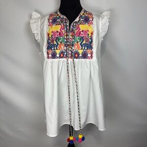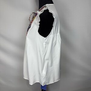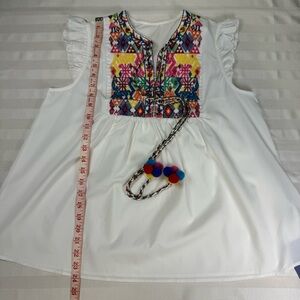 NWT Floerns Embroidered White Babydoll Style Sleeveless Top Colorful Accents
