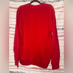 Bold red sweater with a cool Santa graphic. Perfect for festive fun.