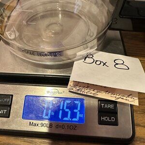 Handle exhibits minor surface scratches. Top to bottom = 6.5 inches, width = 7.5 inches including handle.