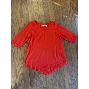 Soft Surroundings Women's Size XS Red Gauze 3/4 Sleeve Tunic Lightweight