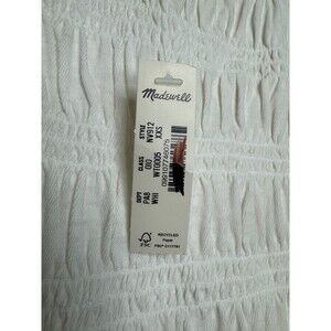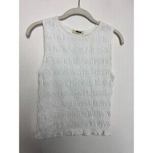 Madewell XXS Smocked Boatneck Tank White Cotton Linen Ruffle Hem Slim Fit NWT