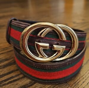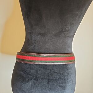 Gucci Women's Leather And Canvas Belt with Red and Green Stripes Vintage