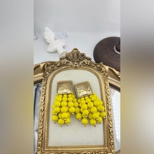 Bright, bold, and full of personality — these yellow statement earrings are the perfect way to elevate any outfit! Featuring vibrant matte yellow beads cascading from a hammered gold-tone square top, they strike the perfect balance between playful and chic.