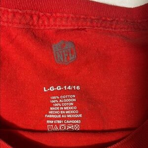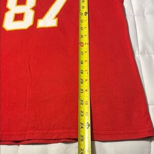 This vibrant red Chiefs kids t-shirt is perfect for young fans. Featuring bold 87 Kelse yellow and white graphics, it's a must-have for game days.