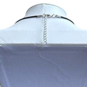 Finished with a sleek black cord and extender chain for adjustable length and comfortable fit.