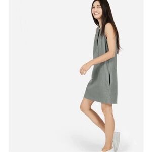 Chic gray mini dress by Everlane. Sleeveless design. Has two pockets. Hidden three button closure on bodice. Measurements in photos. Please also see photos for overall condition of item, no issues noted. Ships from a smoke-free home in Florida.