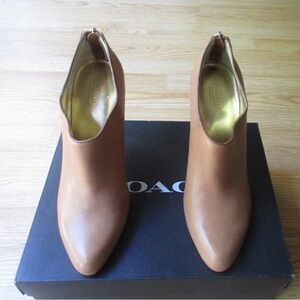 Coach Leather Zip-Back Heeled Ankle Booties Camel Brown Size 11