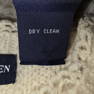 This sweater has some marks around cuffs, back and a spot on back.