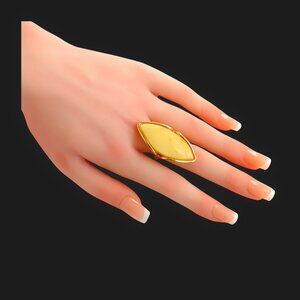 Introducing our beautiful, handmade natural Baltic butterscotch amber adjustable ring. This unique statement piece is crafted from 14k gold plated 925 sterling silver and features beautiful swirls of white, making it truly one-of-a-kind. Its adjustable size ensures a perfect fit every time.