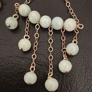 Chic chandelier earrings with gold-filled chains and mint beads. Ideal for a stylish look. Light weight earrings