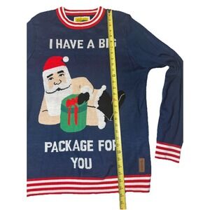 Tipsy Elves Size L Big Package Ugly Christmas Sweater Navy Blue Red White Stripe
